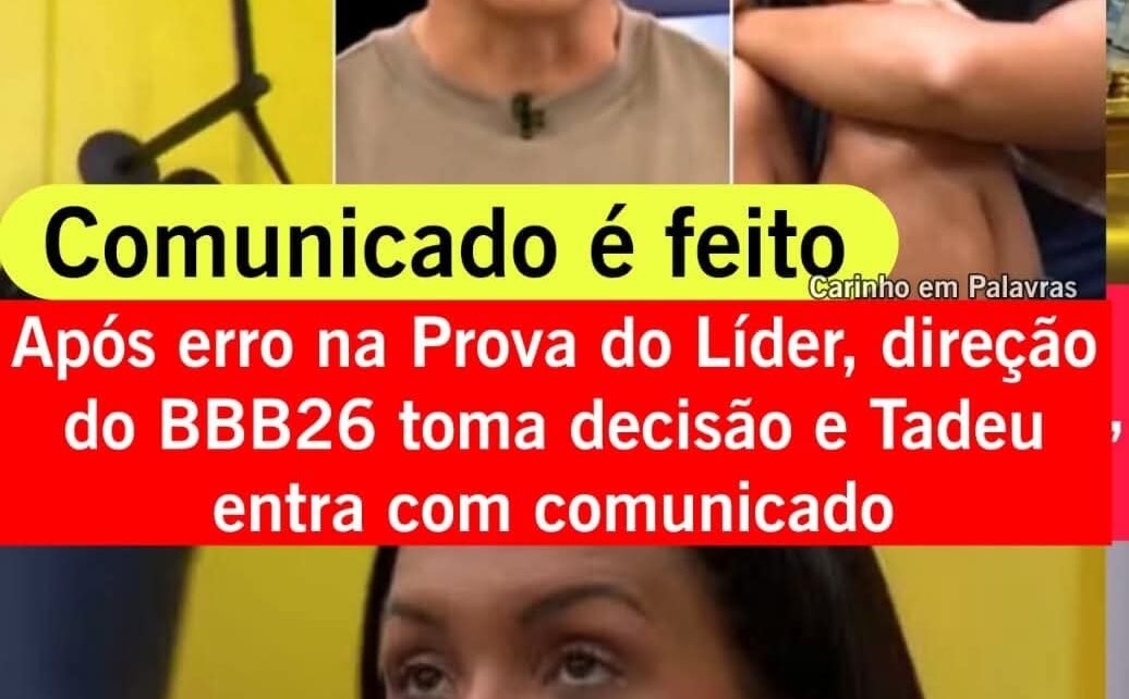 Após erro na Prova do Líder, direção do BBB26 toma decisão e Tadeu entra com comunicado